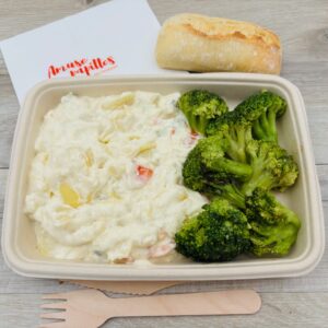 Carottes, poireaux, panais, céleri à la crème & brocolis. | ![]() 430 g | 8,50 € TTC (7,08 € HT) | ||