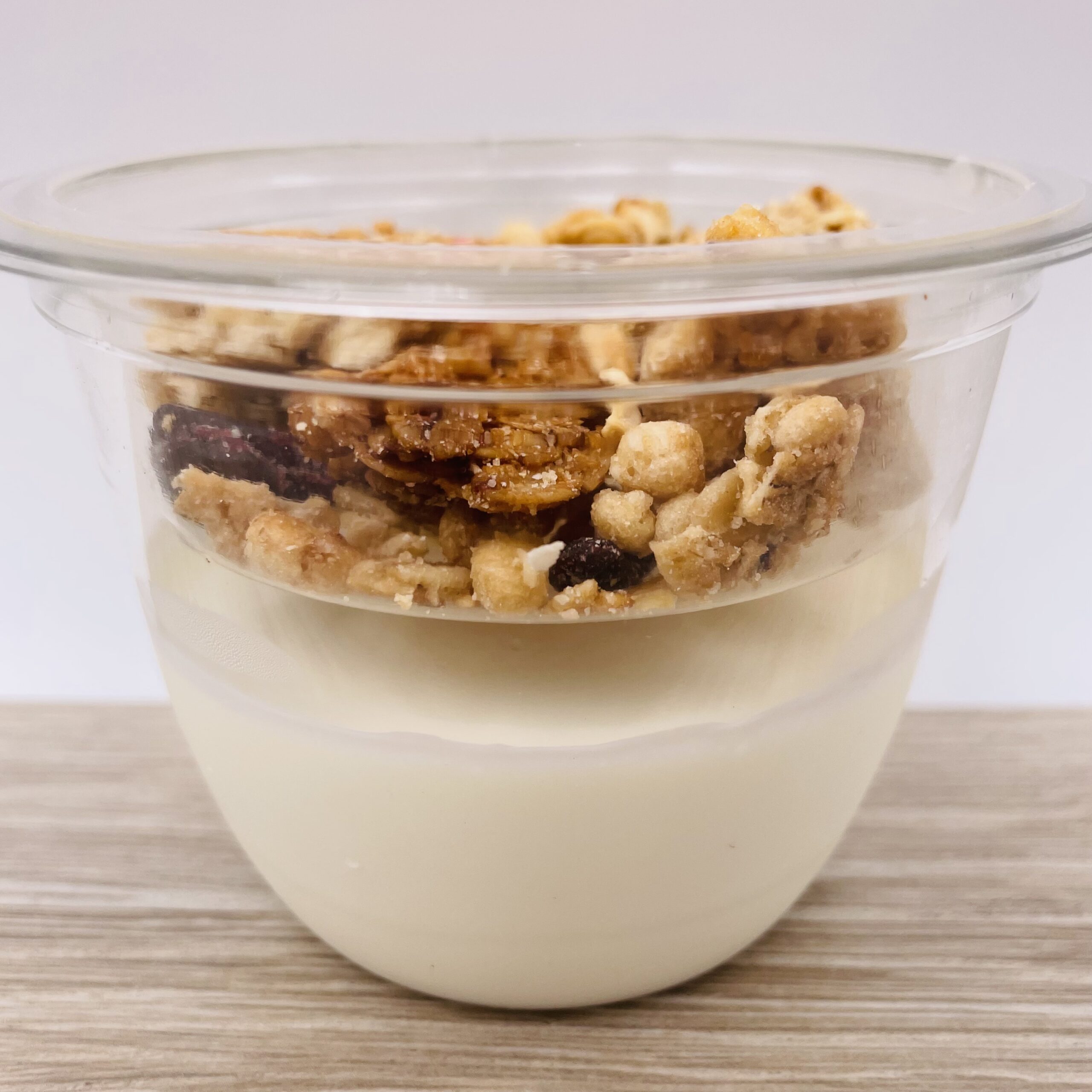 Fromage blanc avec müesli avoine, fruits secs.