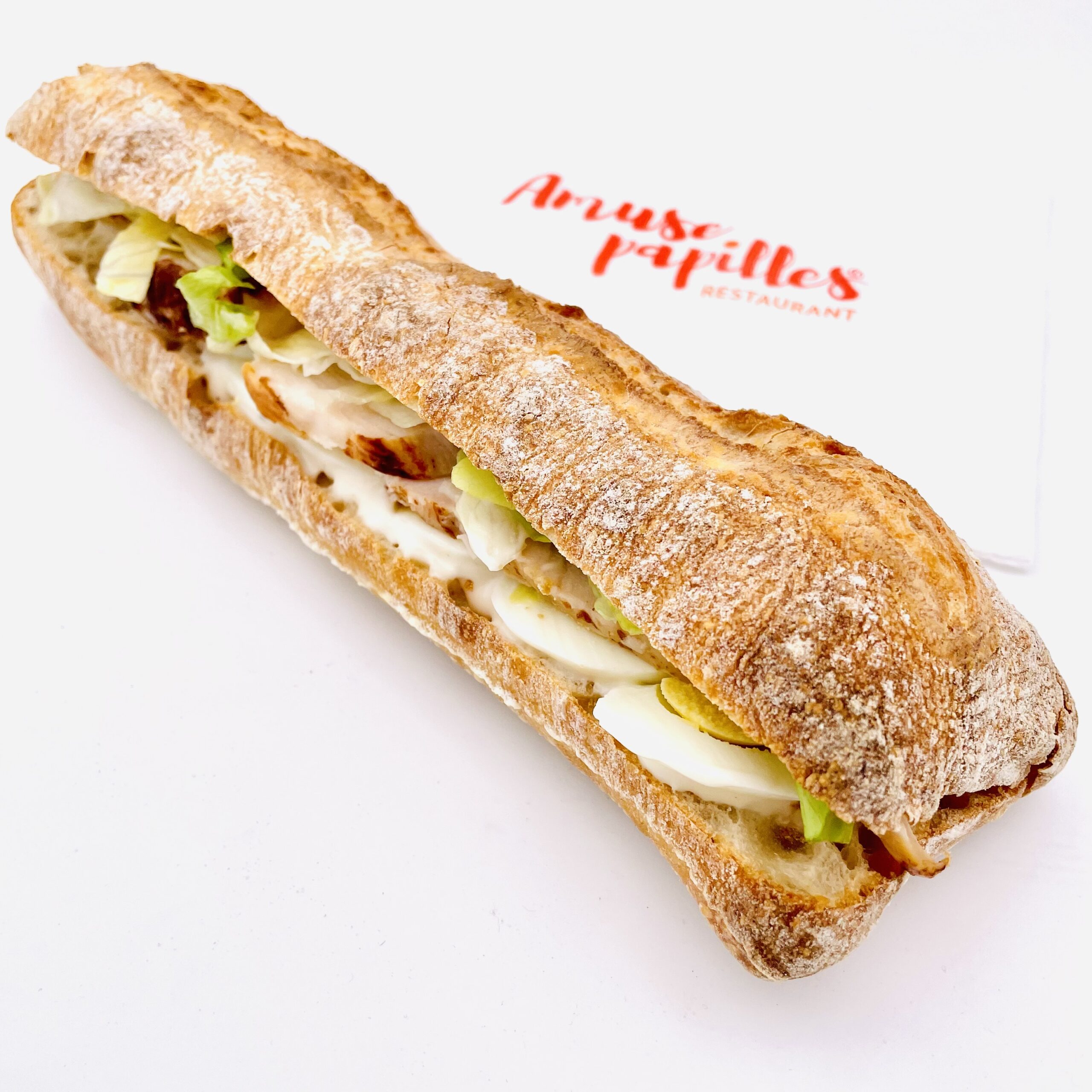 Poulet, œuf, sauce César dans un pain tradition.